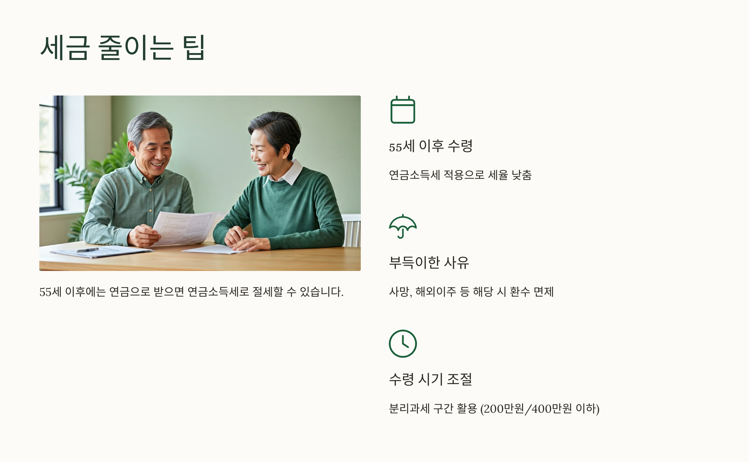공제받은 금액이 클수록, 해지 시 세금 부담도 커져요.