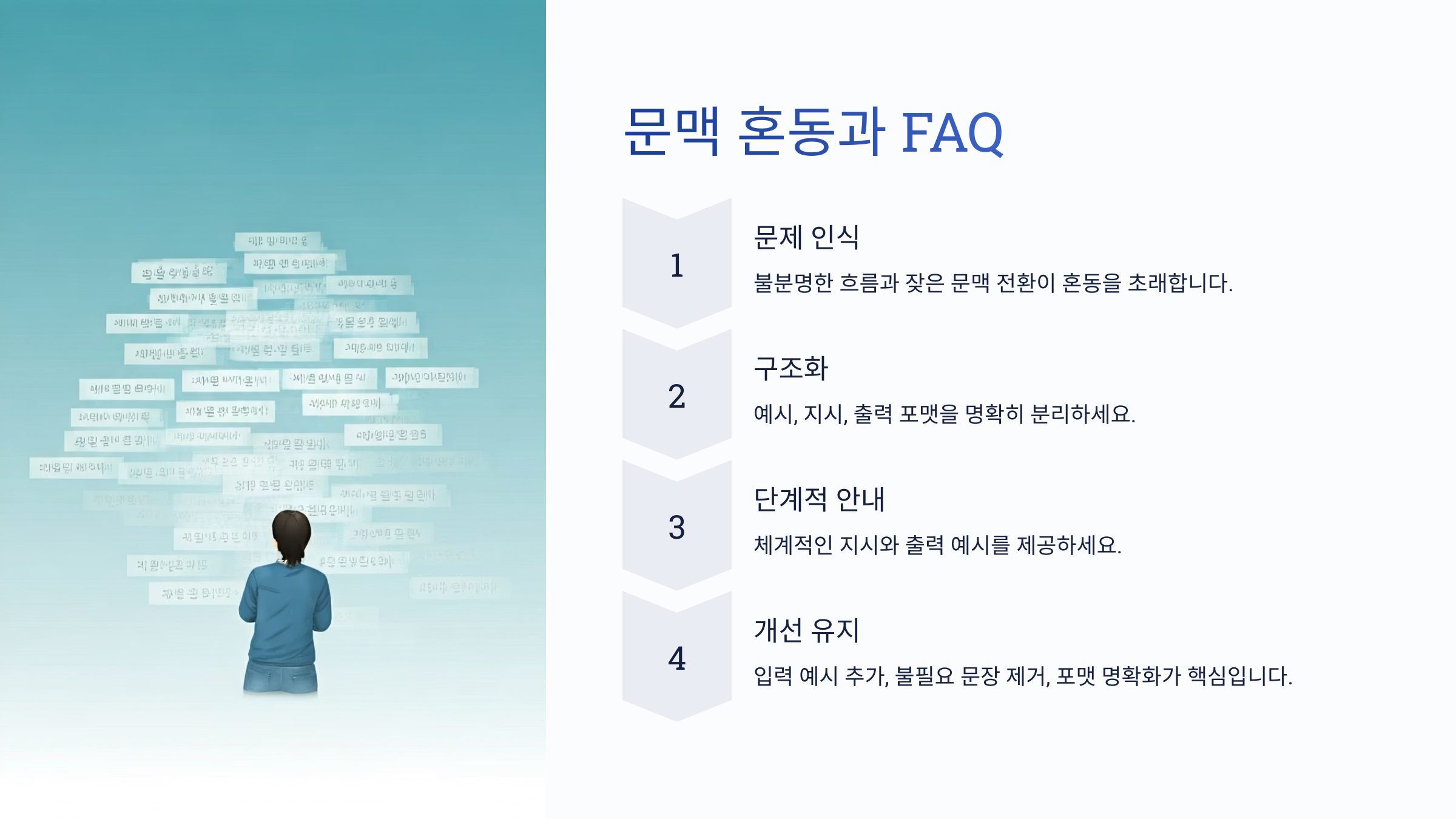 특히 구조가 애매하면 모델이 어떤 요청인지 제대로 이해하지 못하고 틀린 방향으로 응답할 수 있어요.