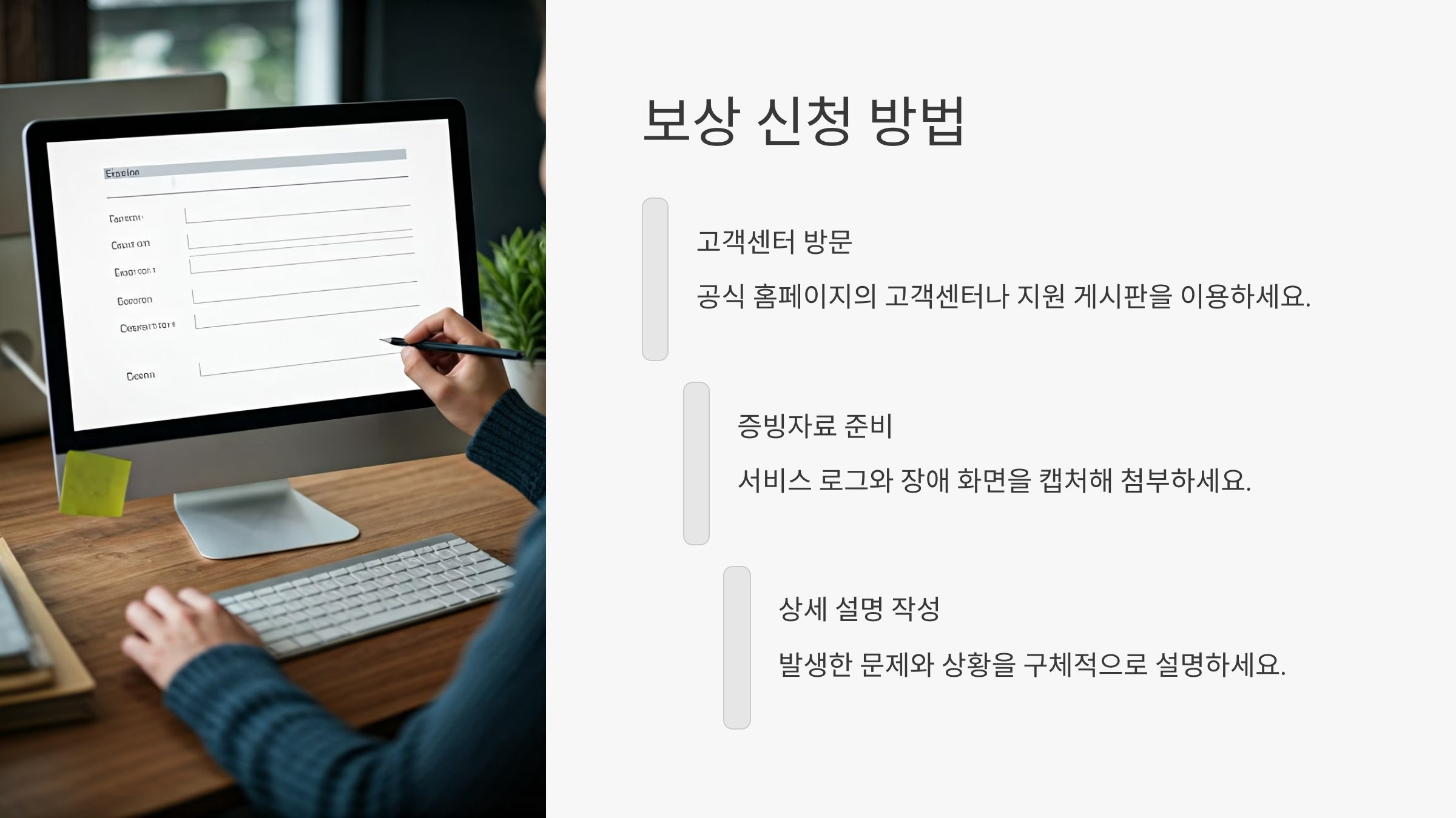 📍 2. 증거 첨부 → 에러 메시지 스크린샷, 작동하지 않는 화면 캡처 등을 함께 보내면 신뢰도가 올라가요.
