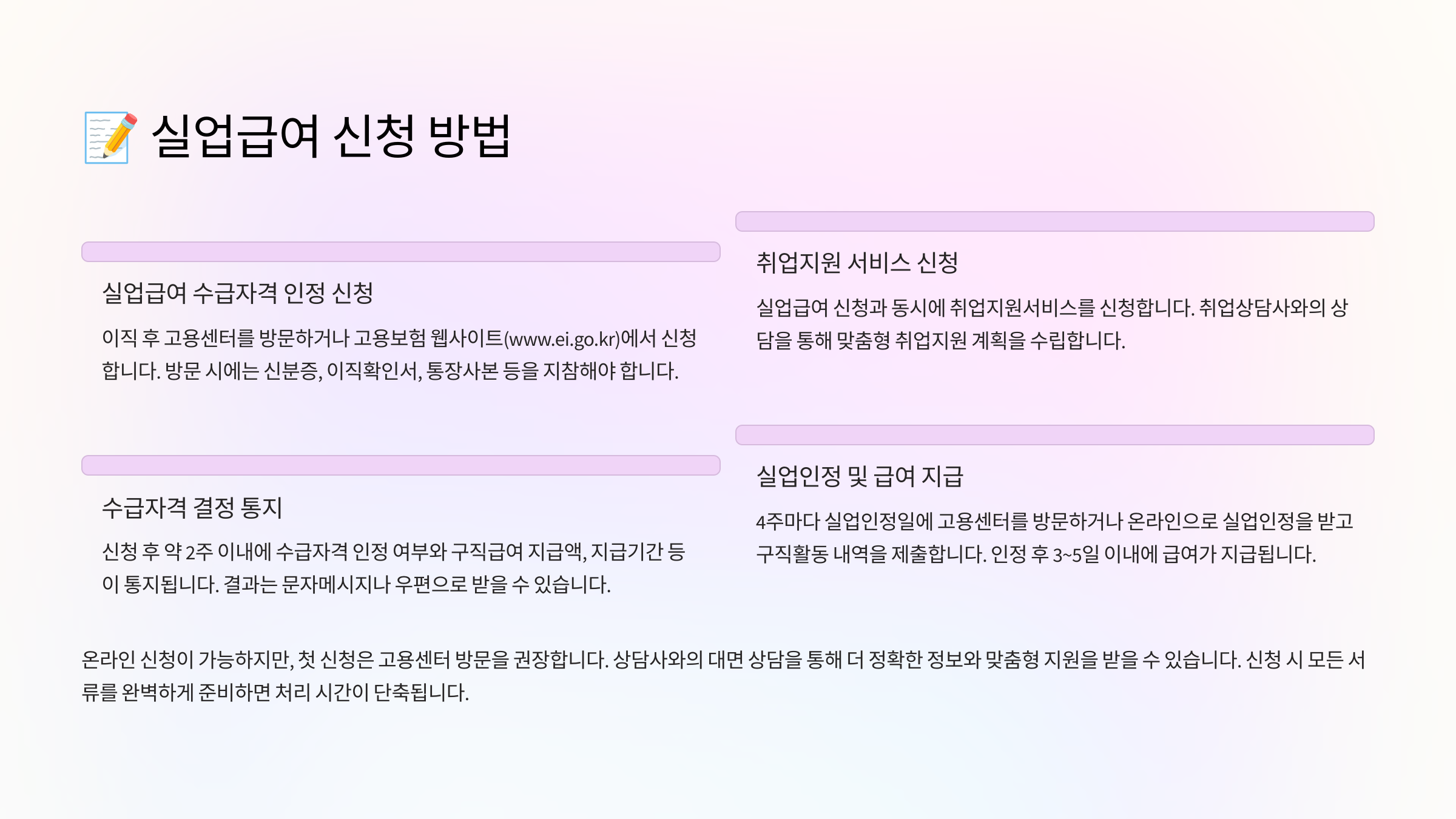 제가 생각했을 때 실업급여는 단순한 돈 문제가 아니라, 심리적인 안정을 주는 안전망이기도 해요.