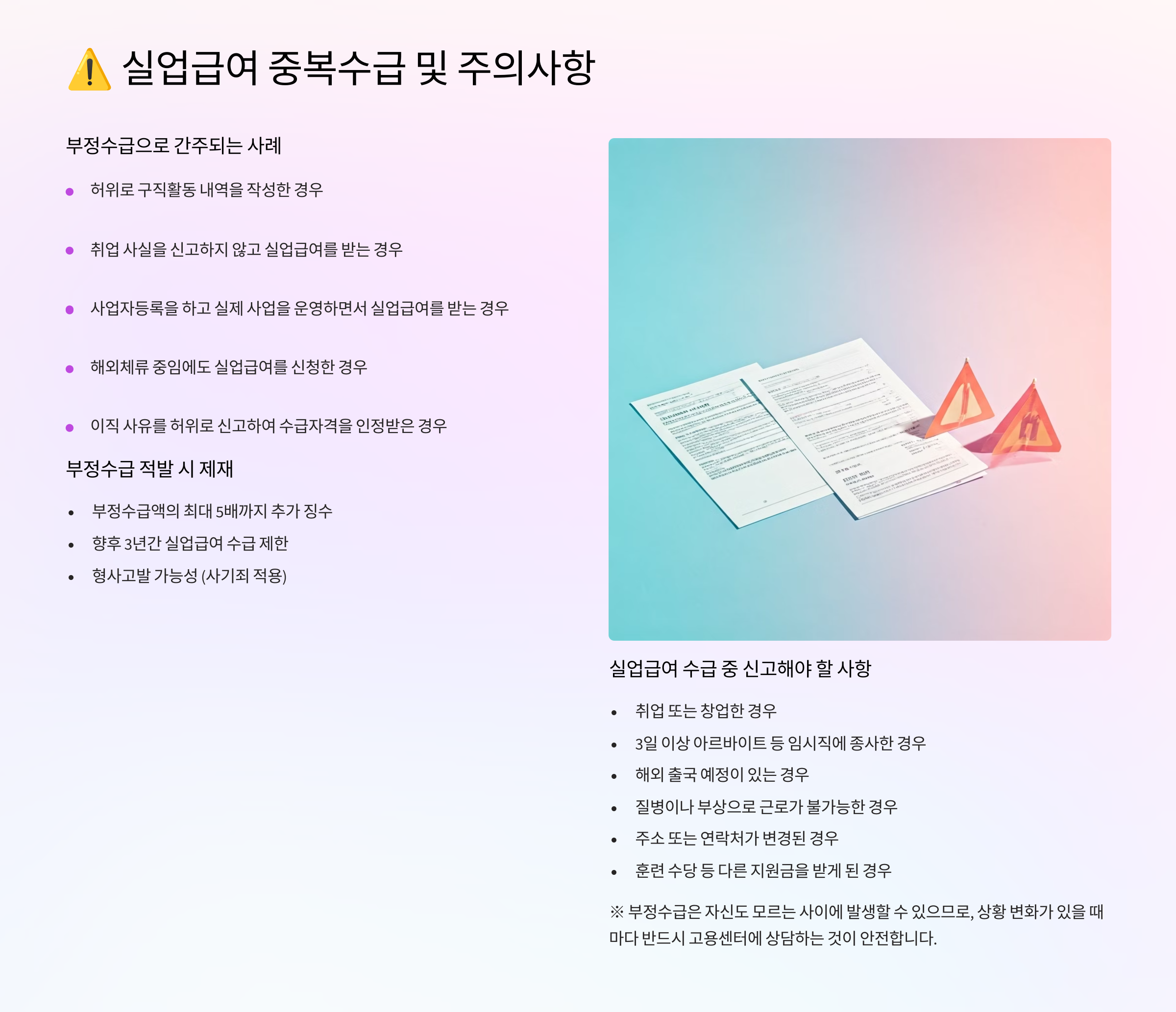 신고하지 않으면 중복수급으로 간주되어 부정수급 처리될 수 있어요.