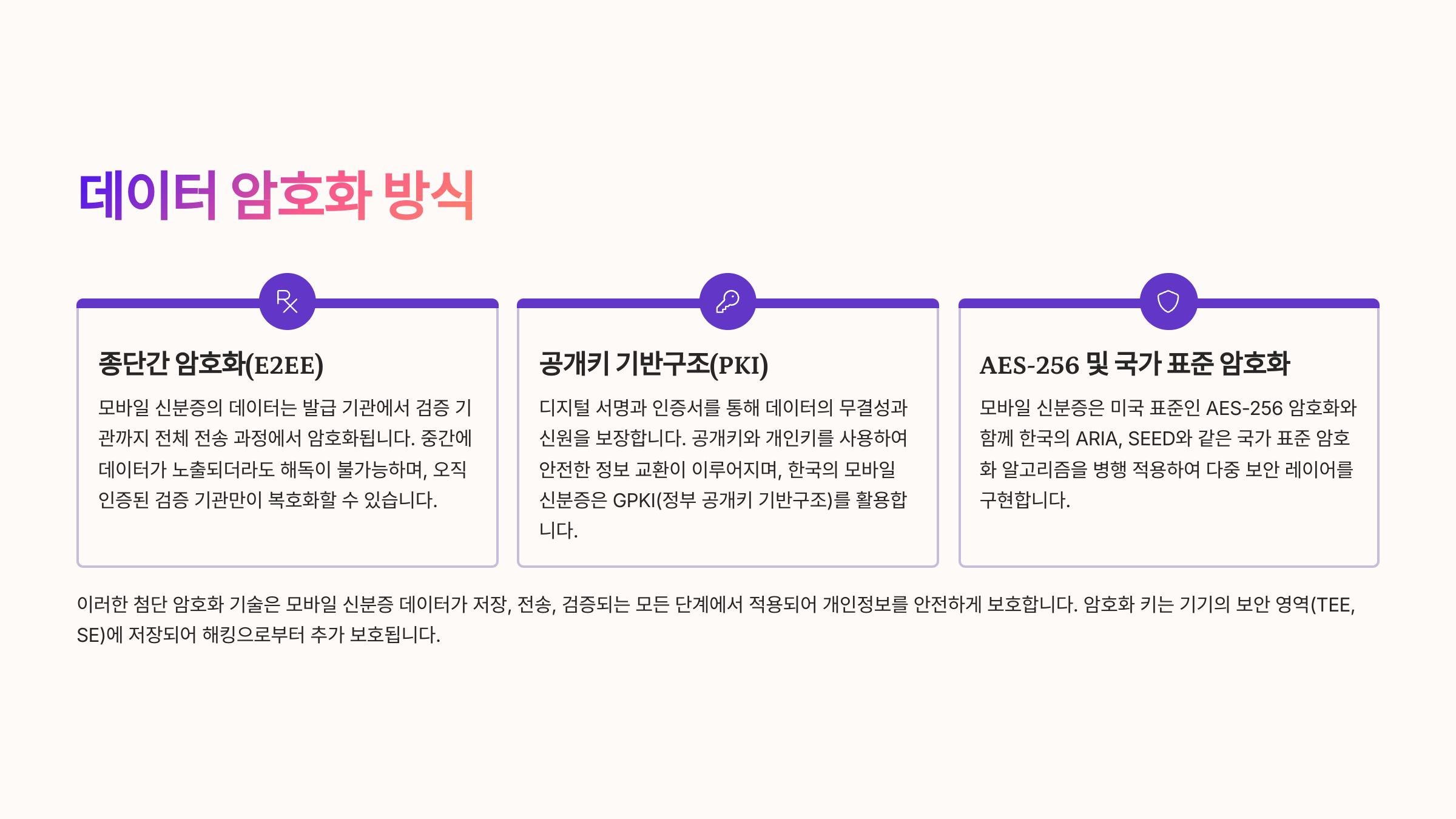 모바일신분증은 단순한 디지털화가 아니라, 고도의 보안 기술이 집약된 시스템이에요.