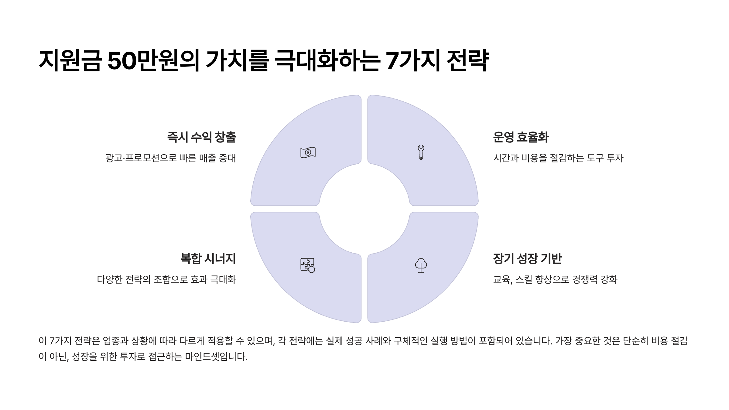실제로 2024년 상반기에 지원금을 받은 소상공인 1,000명을 추적 조사한 결과, 전략적으로 활용한 그룹은 평균 매출이 23% 증가한 반면, 단순 소비한 그룹은 오히려 5% 감소했습니다. 이 글에서는 검증된 7가지 현명한 사용법을 통해 여러분의 50만원이 500만원, 5,000만원의 가치를 창출할 수 있도록 구체적인 로드맵을 제시하겠습니다.