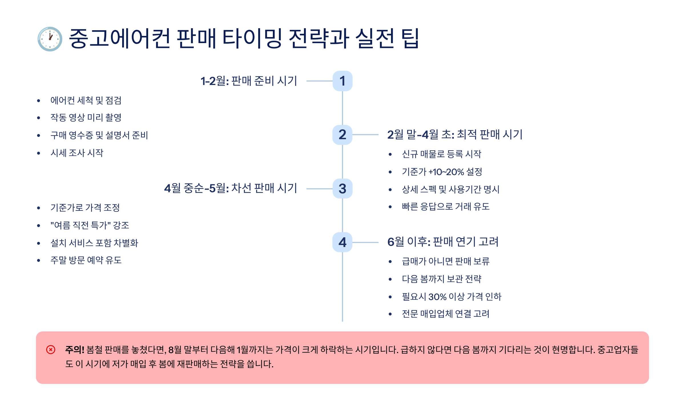 즉, 중고에어컨 판매는 계절을 타는 ‘타이밍 게임’이에요. 딱 한 번의 찬스를 노려야 해요!