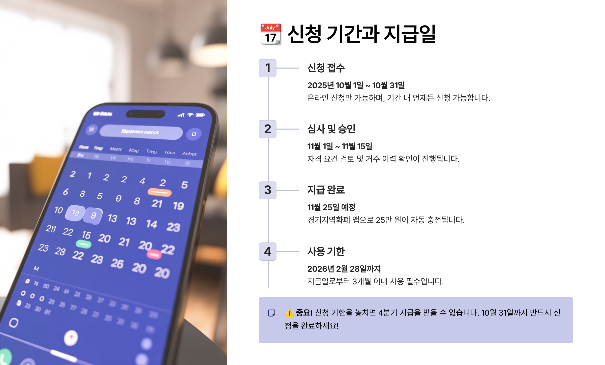 ※ 본 정보는 2025년 4분기 기준으로 작성되었으며, 실제 신청 조건 및 일정은 경기도 공식 공고에 따라 변경될 수 있어요. 정확한 내용은 공식 사이트를 참고해주세요.