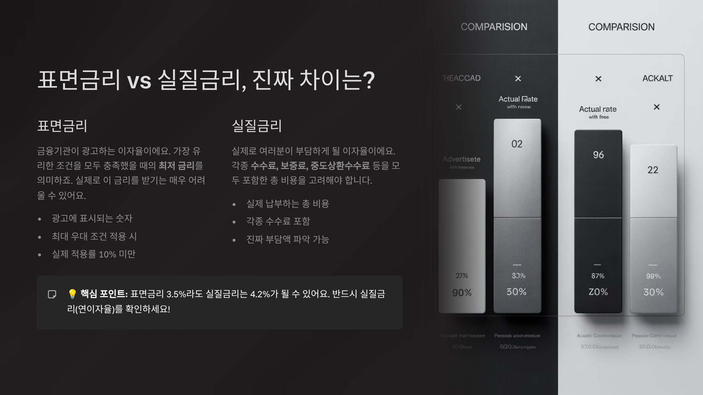 결론적으로 표면금리는 참고만 하고, 반드시 '실질 적용금리'를 요청해서 확인하세요. 실제로 상환해야 할 금액은 실질금리를 기준으로 정해지니까요!