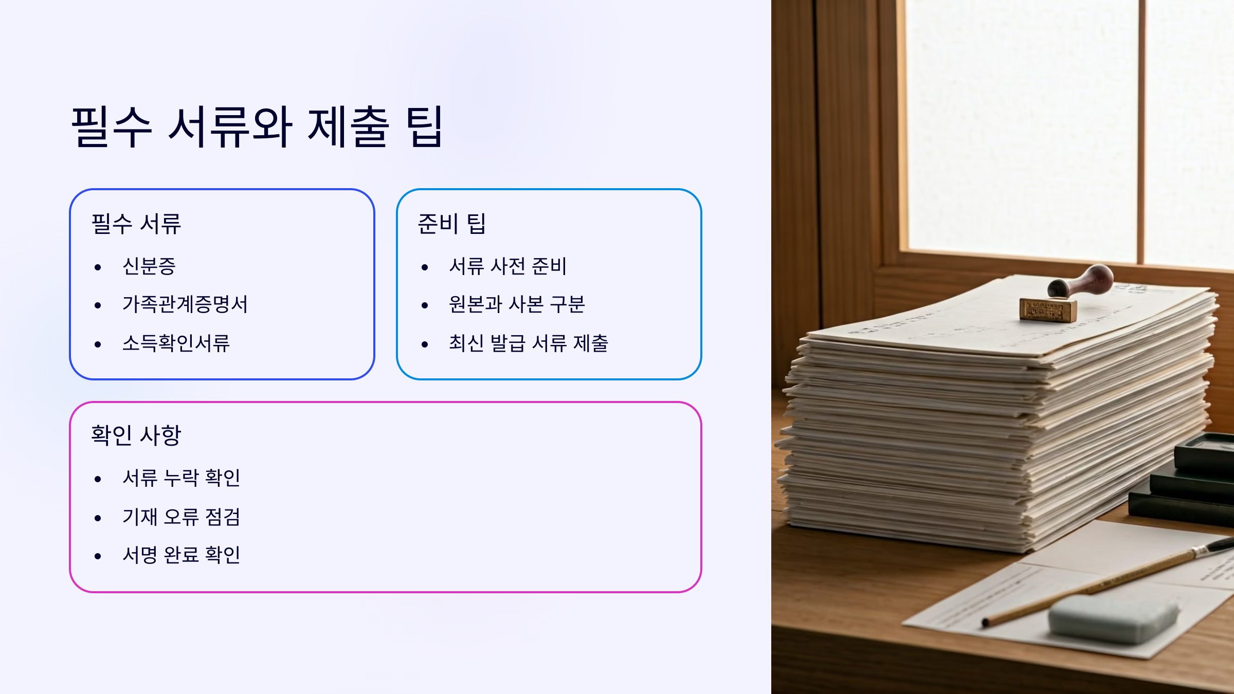 복잡하지 않아서 누구나 쉽게 준비할 수 있지만, 서류가 누락되면 심사 지연이 생길 수 있으니 꼼꼼히 챙기는 게 중요해요.