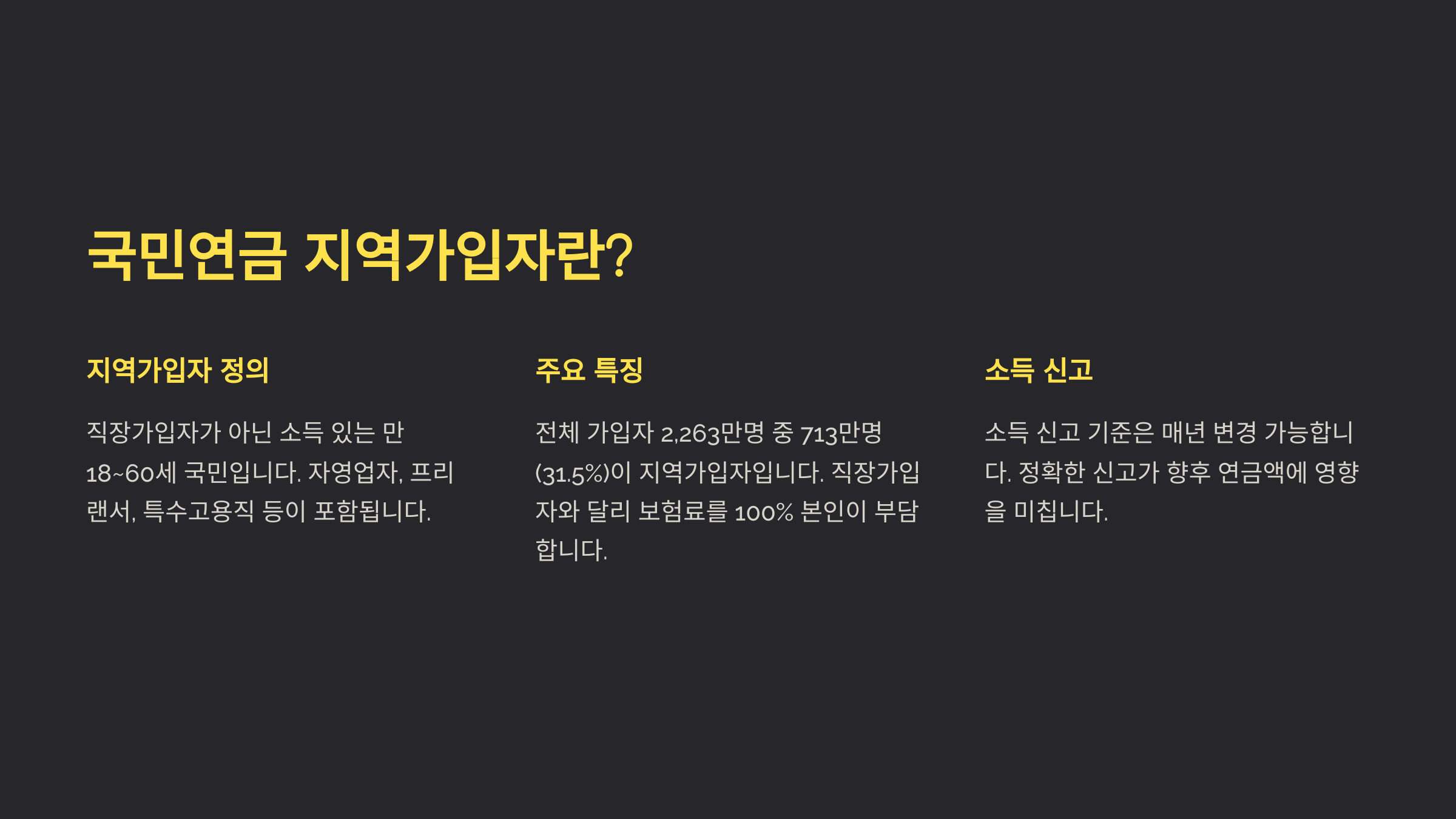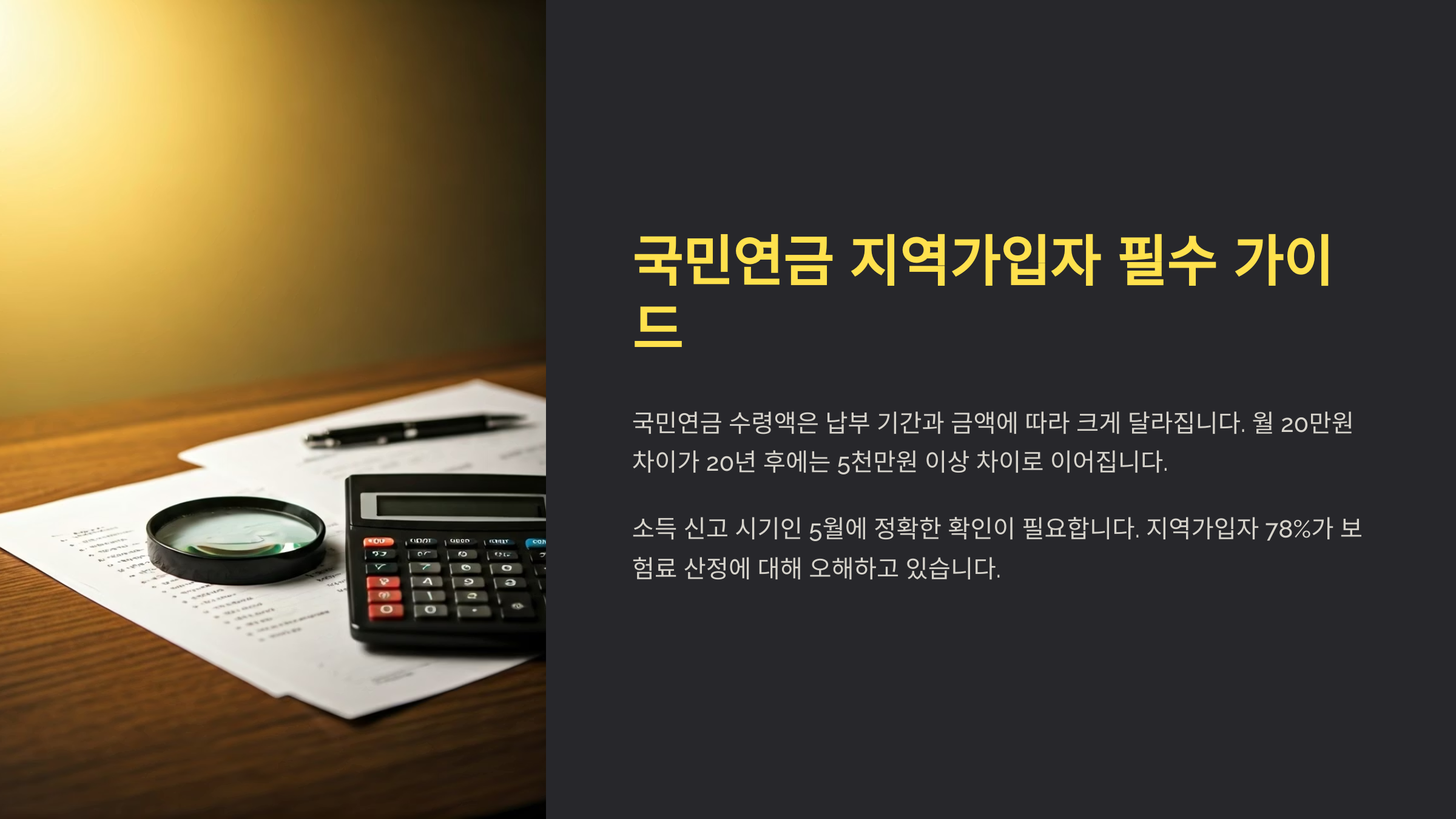 국민연금 지역가입자라면 보험료 계산부터 납부예외까지 반드시 체크해야 할 포인트가 많습니다. 매달 내는 금액이 부담스럽다면 지금 바로 소득 기준을 점검하고, 공단에서 제공하는 인하 및 예외 제도를 적극 활용해보세요.