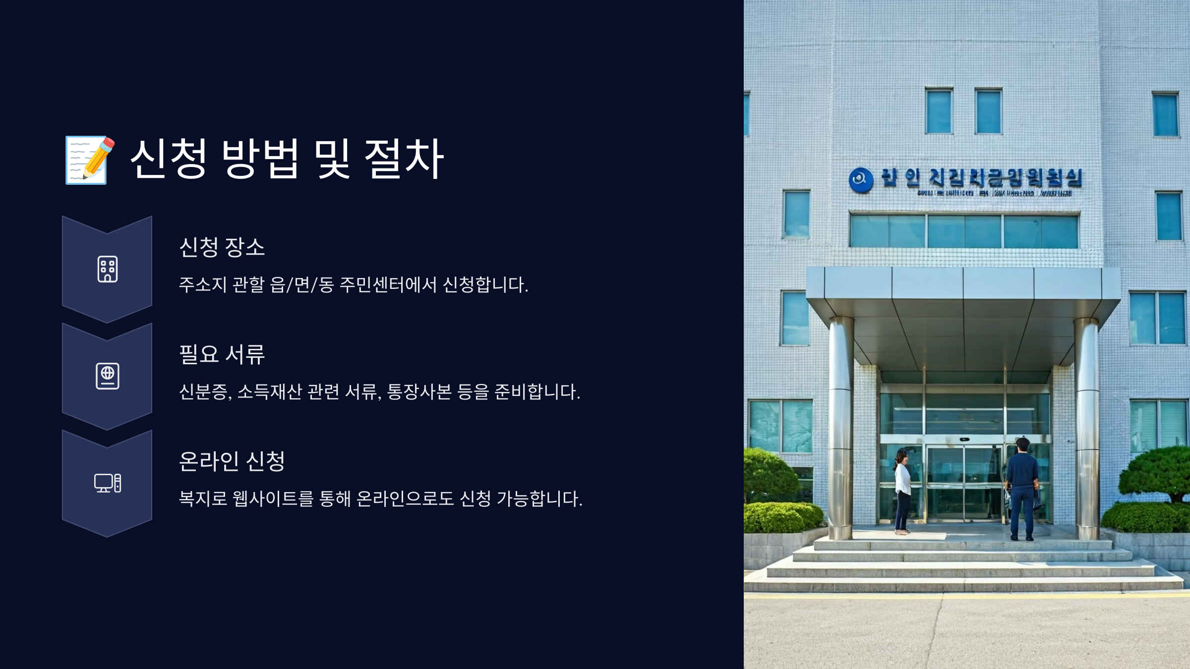 | 1단계 | 읍·면·동 행정복지센터 방문 또는 온라인 신청 |