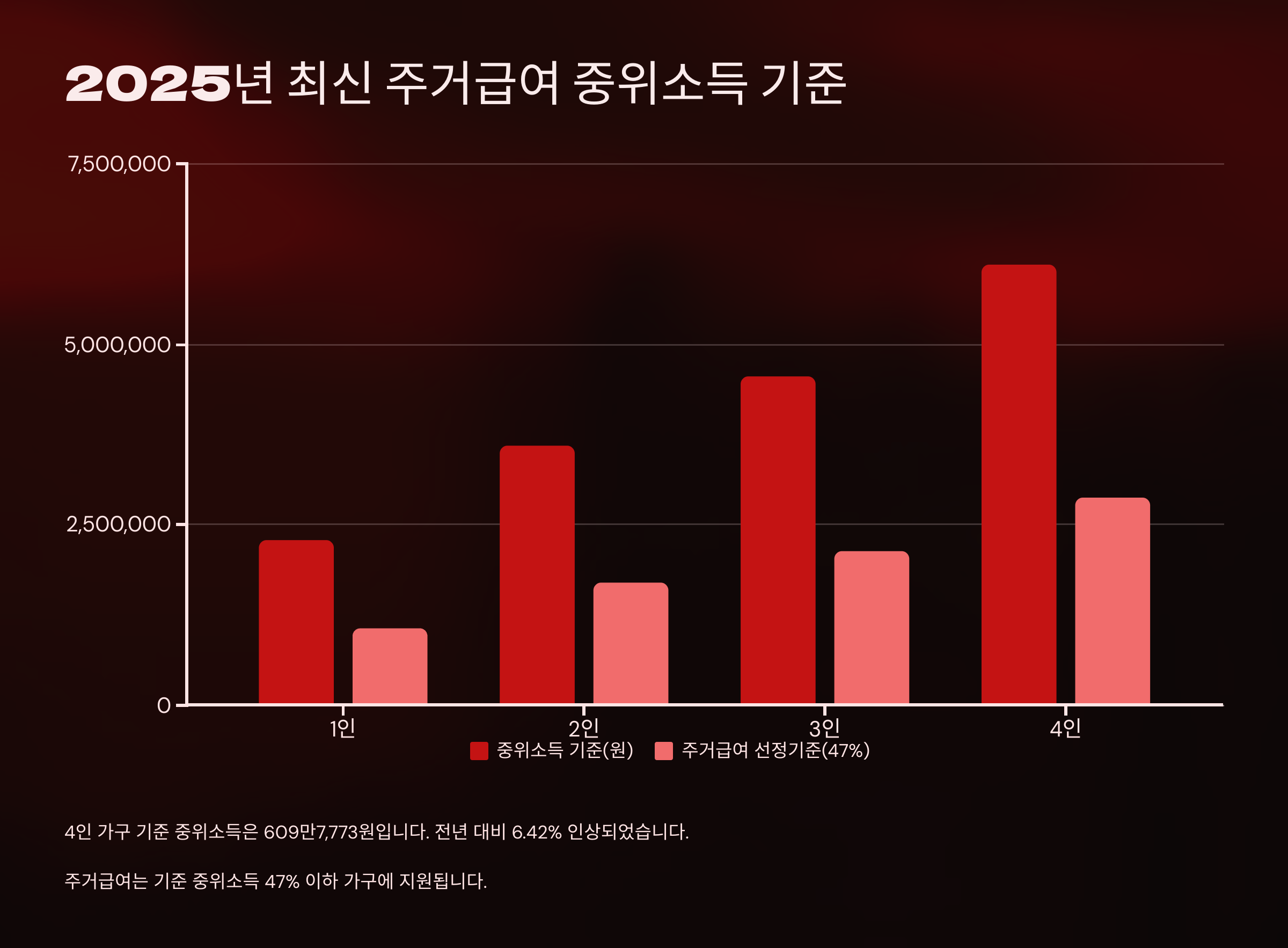 2025년 주거급여는 ‘중위소득 47% 이하’ 가구가 신청할 수 있어요.