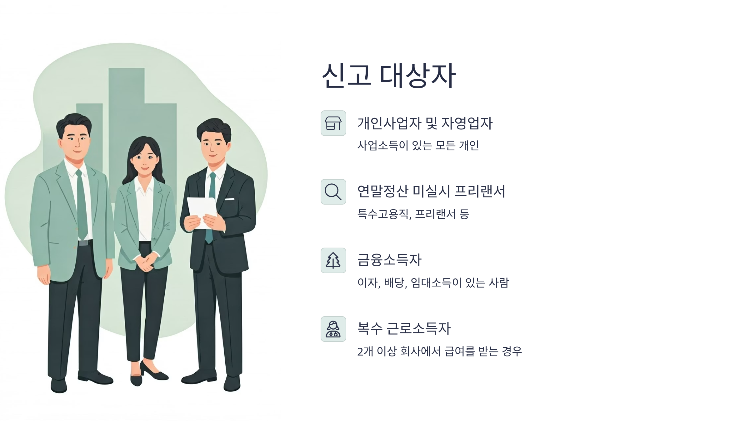 | 대상자 | 단순 신고자 / 프리랜서 / 소액소득자 |