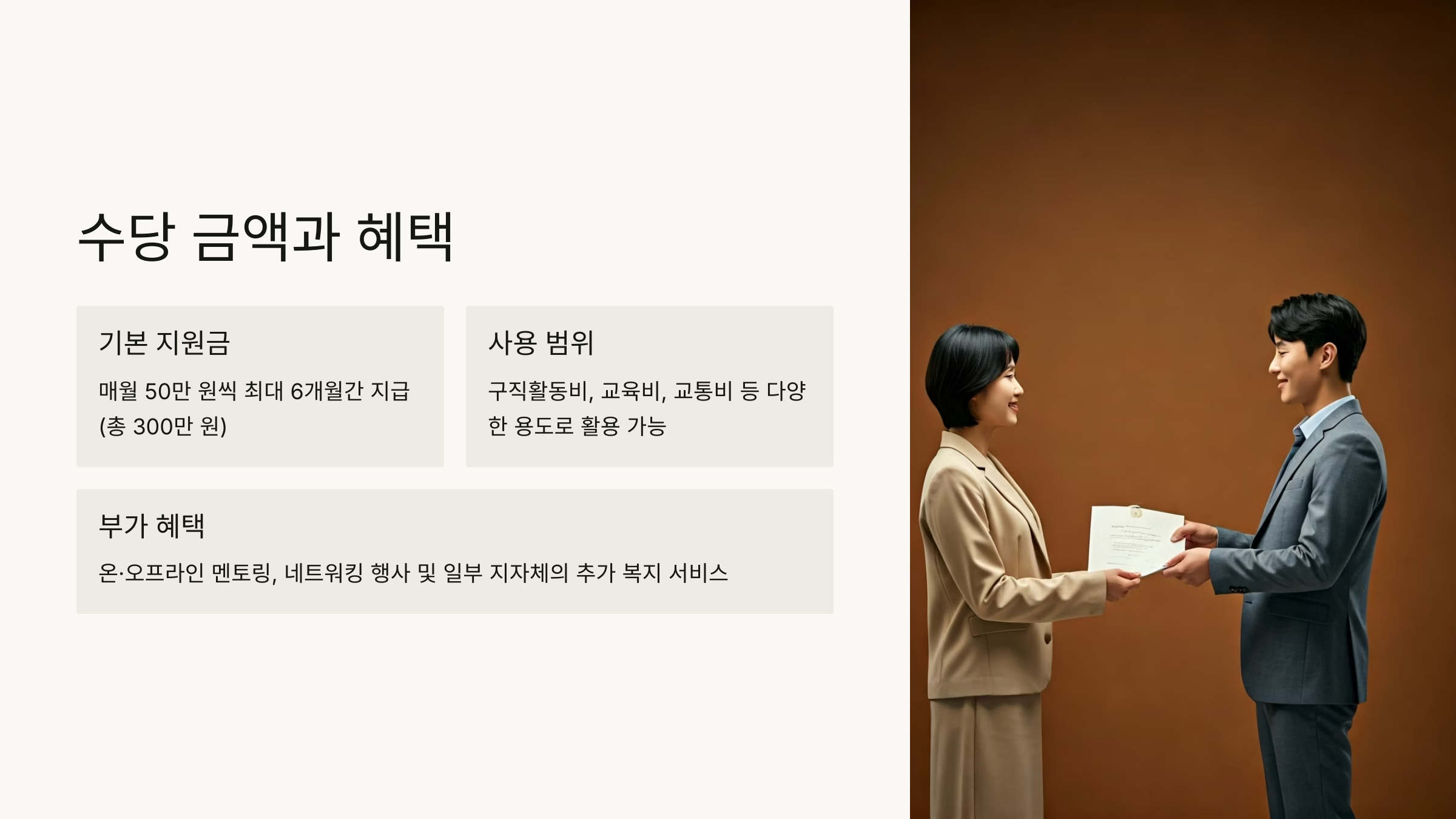 혜택은 단순히 현금이 전부가 아니에요. 자신감, 정보, 기회까지 함께 따라오기 때문에 더 큰 가치가 있는 제도예요. 🎯