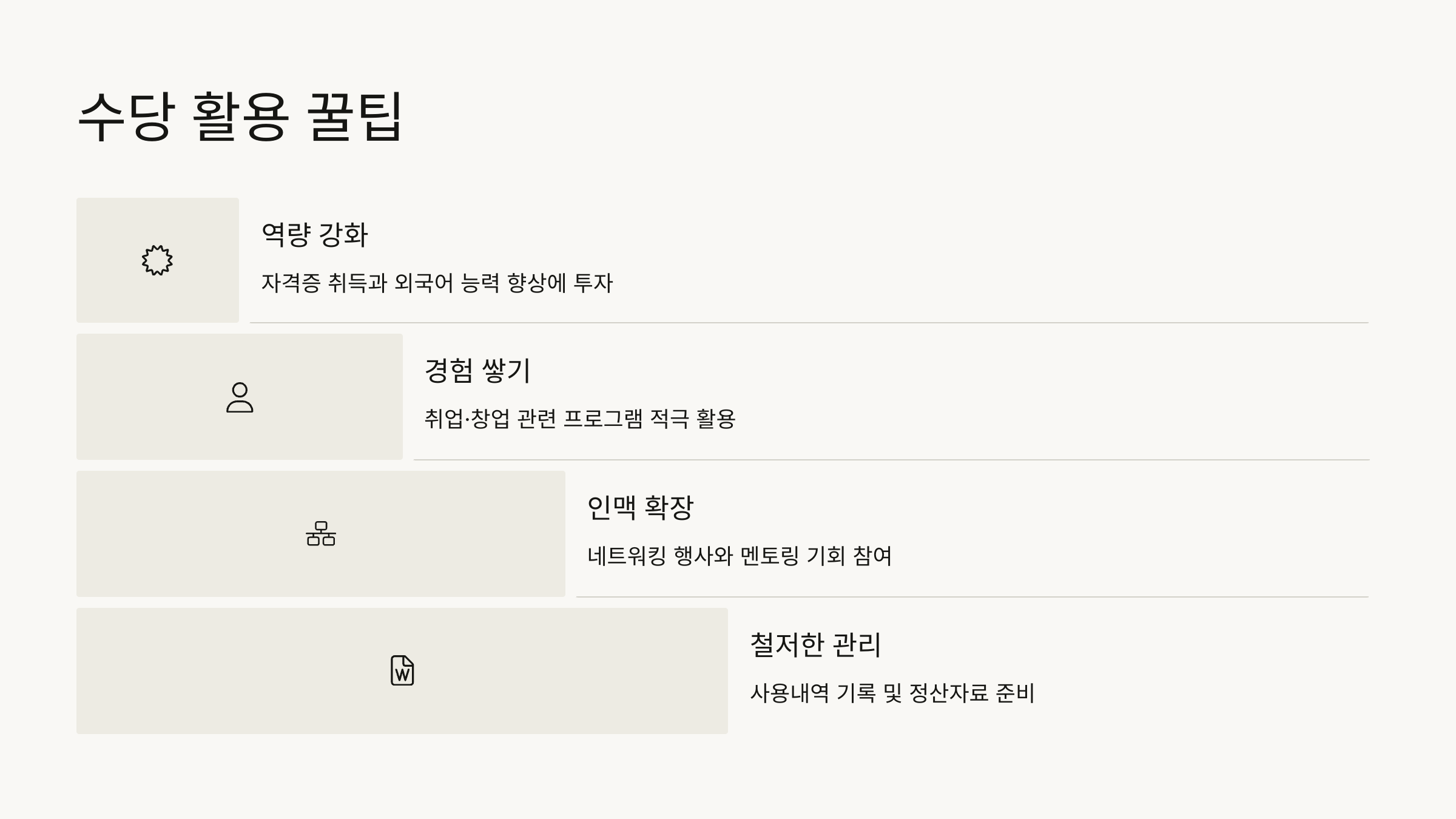 수당을 ‘어떻게’ 쓰느냐에 따라 결과가 달라져요. 똑똑하게 쓰면 자신감, 경험, 실력까지 덤으로 따라온답니다! 💪