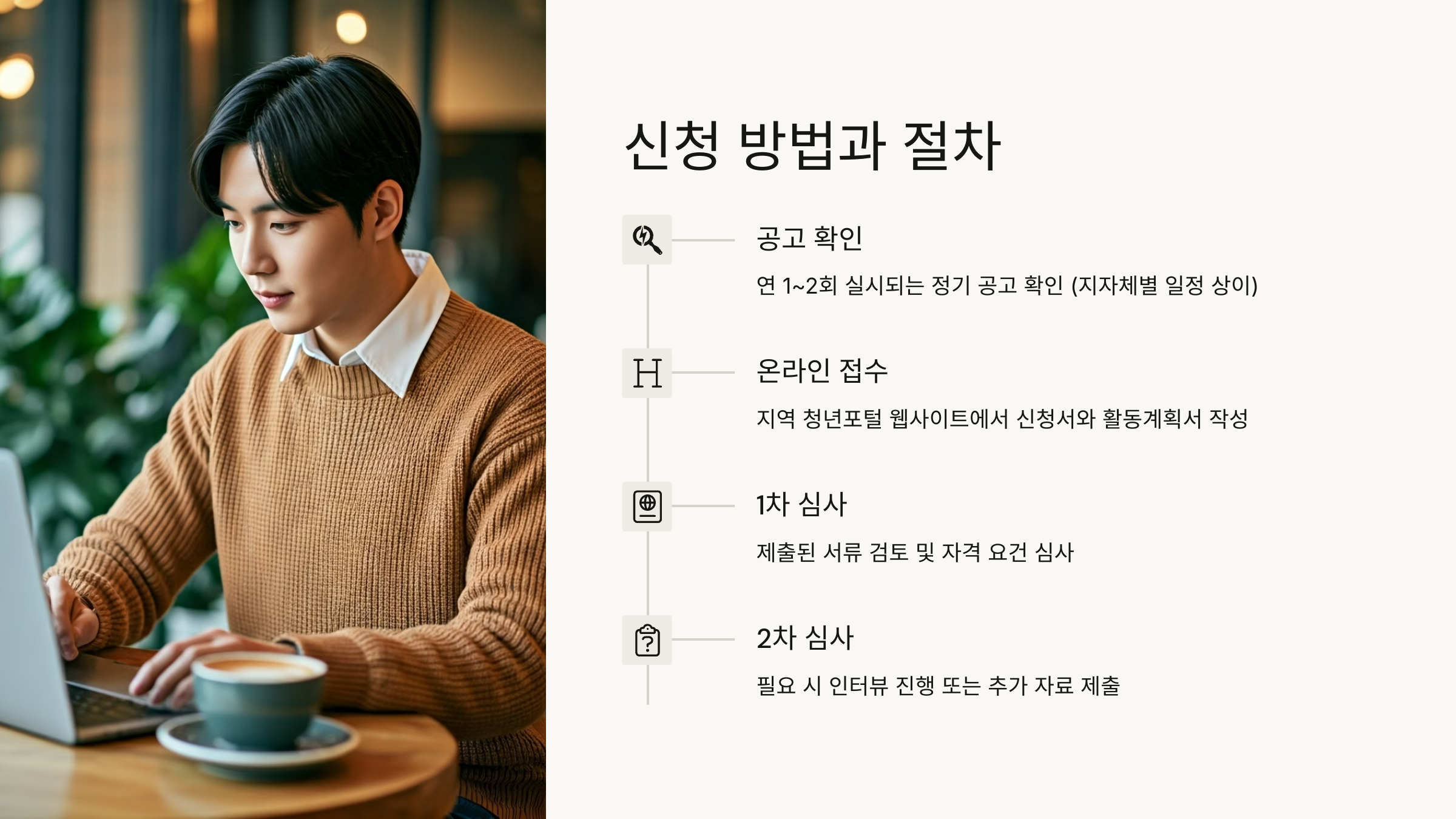 이건 ‘진짜 준비하고 있는 청년’인지를 확인하기 위한 절차예요. 길게 쓰기보다 진정성이 느껴지는 게 좋아요.